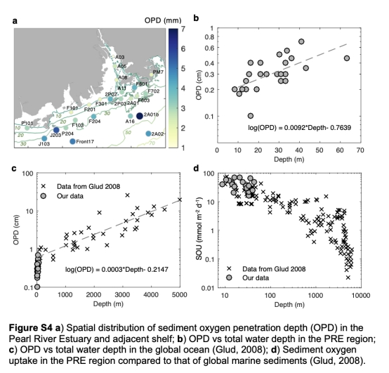 高SOU值與淺層OPD結合(圖S4),表明沉積物中有機物快速分解,支持“沉積物主導缺氧”的結論。