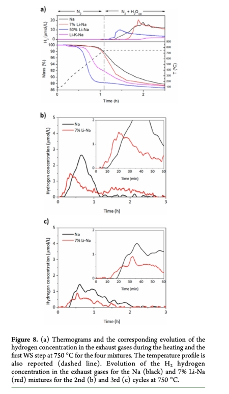 動力學分析:通過氫氣釋放時間曲線(如7% Li-Na在第二/三循環(huán)中氫峰前移,圖8b-c),揭示熔融碳酸鹽促進離子擴散的瞬態(tài)效應(yīng)。