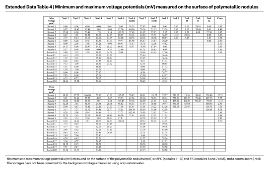 結(jié)核表面電壓(圖2):最高達(dá)0.95 V,支持電解假說(shuō)。
