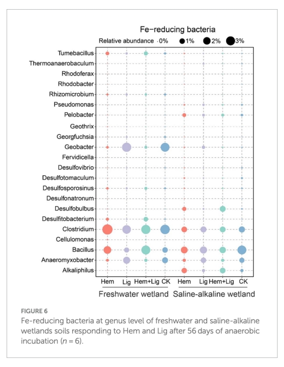 數據意義:Hem降低呼吸型鐵還原菌(如Geobacter)豐度,但促進發酵型菌(Clostridium)增殖,驅動碳礦化途徑轉變。