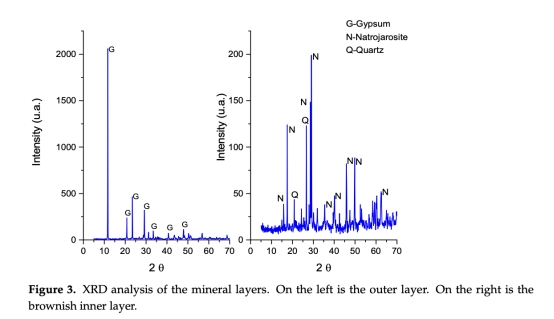 pH與溫度:礦物層內(nèi)部pH穩(wěn)定在0.8,溫度約12°C(圖2)。