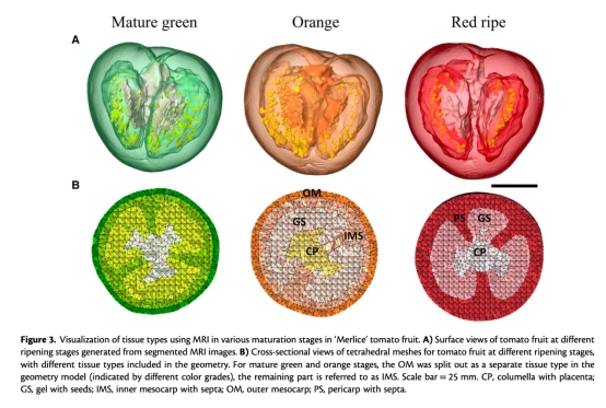 通過MRI獲取番茄果實(shí)不同成熟階段的三維幾何結(jié)構(gòu);