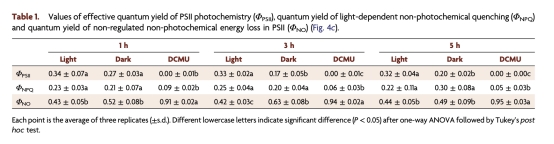 葉綠素?zé)晒鈪?shù)(圖4、表1):光照下Fv/Fm為0.62,DCMU處理降至0.17。意義:根部光合系統(tǒng)II(PSII)功能完整,但受抑制后嚴(yán)重受損。