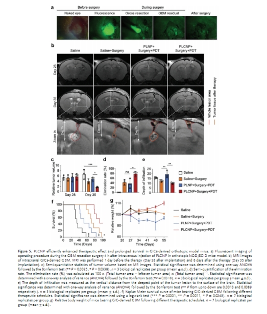 總結(jié):PLCNP通過整合靶向遞送、熒光引導(dǎo)和氧生成功能,為GBM的精準(zhǔn)切除和術(shù)后殘留清除提供了創(chuàng)新解決方案,具有重要臨床轉(zhuǎn)化價(jià)值。