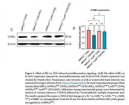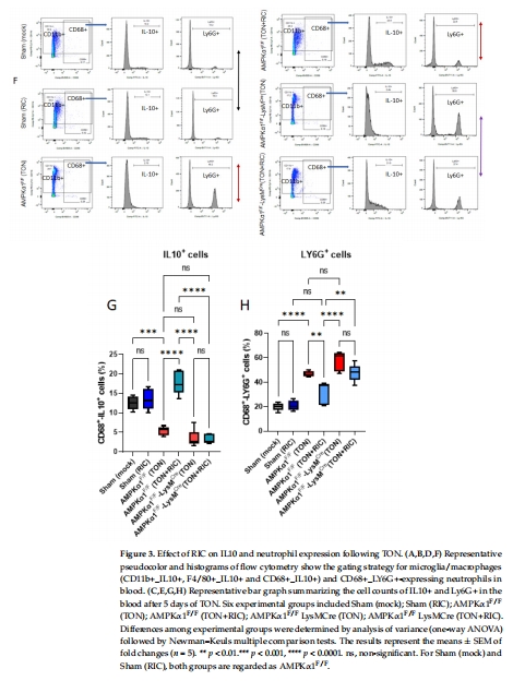 聚焦點:驗證AMPKα1(能量代謝與免疫調節關鍵激酶)在RIC介導的抗炎信號中的作用,尤其是其在骨髓細胞(小膠質細胞/巨噬細胞)中的功能。