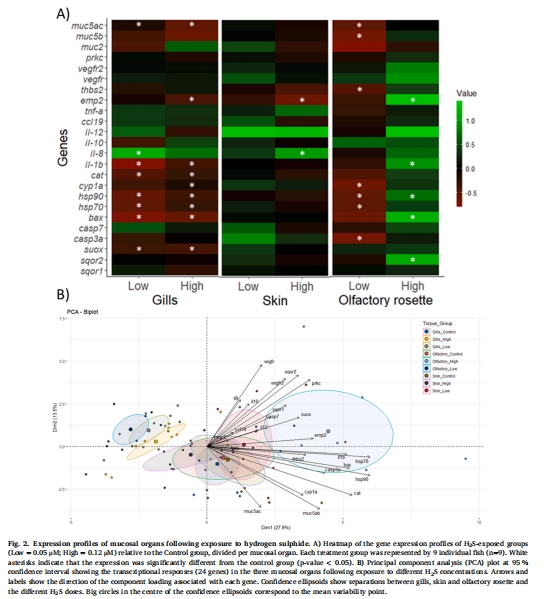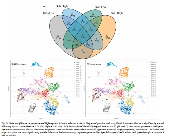 論文研究了亞致死濃度硫化氫(H?S)長期暴露(12天)對大西洋鮭魚(Salmo salar)黏膜器官(鰓、皮膚、嗅球)的影響。通過多組學分析(轉(zhuǎn)錄組、蛋白組、代謝組)和組織學評估,發(fā)現(xiàn):
