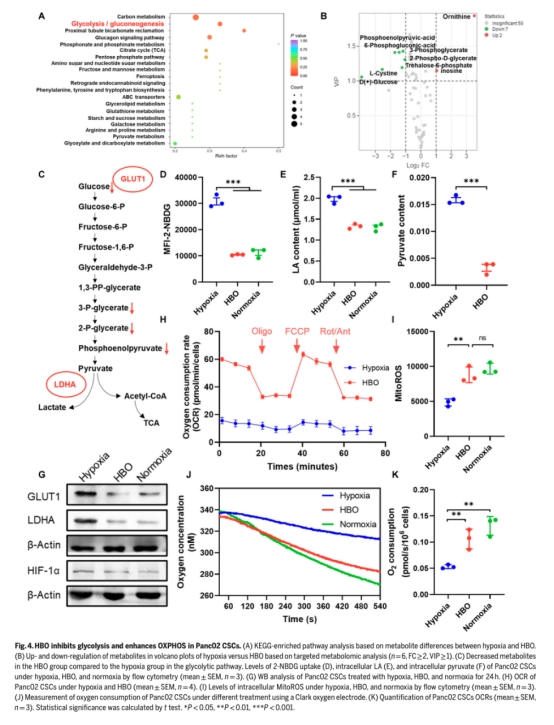 HBO通過抑制HIF-1α通路下調(diào)GLUT1/LDHA,阻斷CSCs糖酵解,逆轉(zhuǎn)缺氧微環(huán)境。