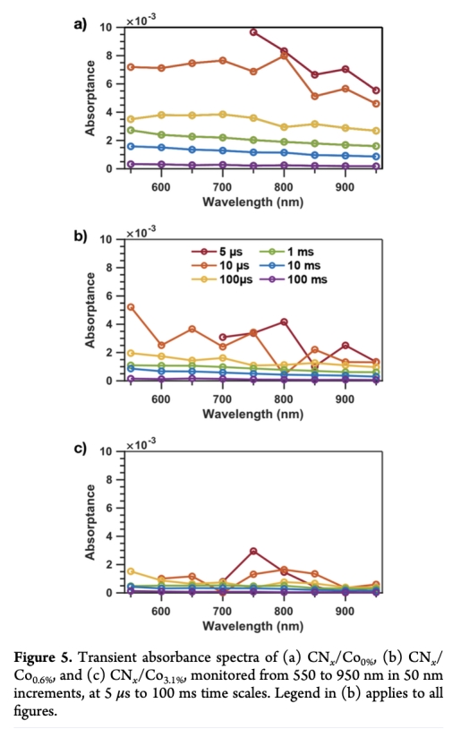 鈷作為氧化助催化劑,在亞納秒時間尺度高效提取空穴,顯著延長光生電荷壽命(微秒-毫秒尺度),促進電荷空間分離,是性能提升的關鍵機制。