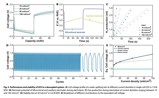 成功開發(fā)無膜解耦電解槽,通過電容機制實現(xiàn)氫氧時空分離,適應(yīng)酸/堿環(huán)境。