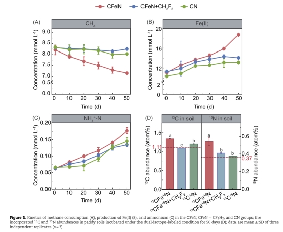 該過程揭示了甲烷氧化菌在缺氧土壤中耦合碳、氮、鐵循環的新途徑,為減少農業氮肥依賴及稻田溫室氣體減排提供理論依據。
