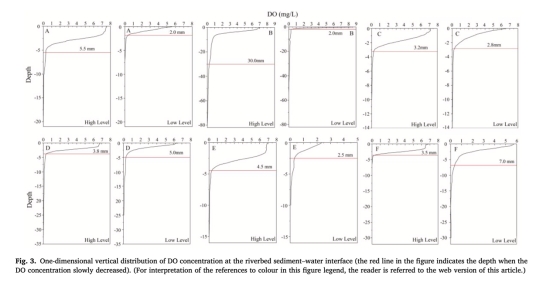 毫米級分辨率捕捉氧化界面遷移:以250 μm步長原位測定DO剖面(圖3),精確量化DO滲透深度(如B點從豐水期30 mm驟降至枯水期2 mm),直接證明近岸淤積導致氧化層變薄,為氧化還原分帶上移提供關鍵證據。