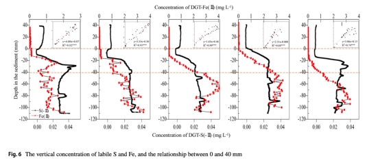 鐵-硫解耦效應:缺氧層(20-40mm)中Fe(II)與S(-II)同步增加(R2=0.89, 圖6),形成FeS沉淀,削弱鐵對磷的耦合控制。
