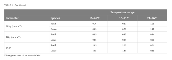 數據:溫度從16°C升至26°C,紅眼魚CR增加3.22倍,馬拉巴斑馬魚增加7.40倍。