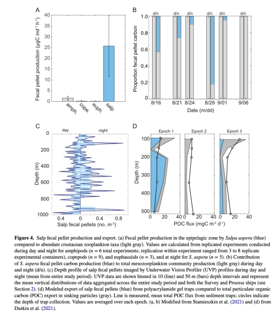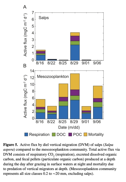 量化樽海鞘水華期間的多途徑碳輸出(糞便顆粒、DVM主動輸送、尸體下沉)。