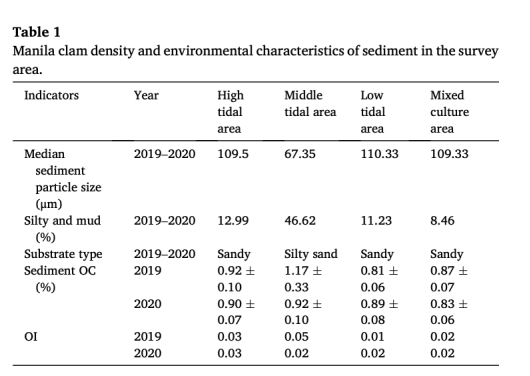 密度效應:高養殖密度(中潮區)加劇有機污染,促進低氧/H?S生成,增加死亡風險(表1顯示中潮區OC與H?S正相關)。