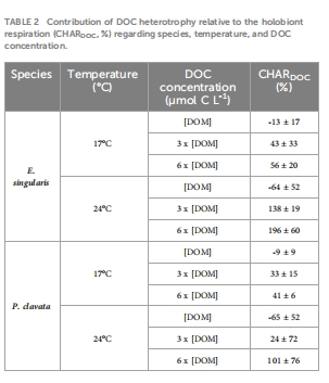 環境濃度下珊瑚釋放DOC,高濃度(6×)時E. singularis吸收增加(CHAR<sub>DOC</sub>