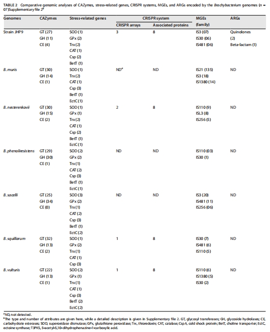 適應性:抗生素抗性(氯霉素/卡那霉素)、CRISPR-Cas系統、移動遺傳元件(表2)。