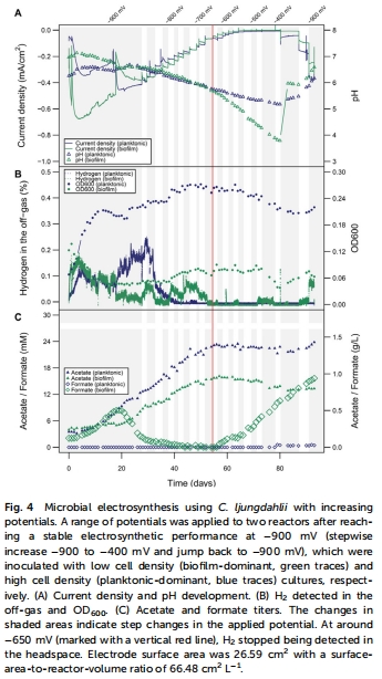 通過 電位階梯實驗(-900 mV → -400 mV)驗證H?對代謝活性的必要性(圖4)。