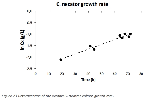 生長速率(μ) 圖22、23(C. necator批次) 揭示規模化潛力。μ=0.021 h?1,低于文獻值(0.011–0.094 h?1),受傳質限制(圖27)。
