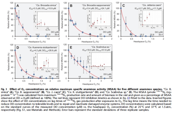 氧耐受性層級:Scalindua(海洋) ? Brocadia > Kuenenia ≈ Jettenia(淡水)。