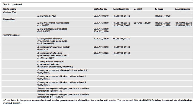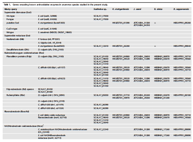 抗氧化基因分布 表1 Scalindua獨有SOD基因(sodA/B)和CAT基因,淡水種依賴Sor-過氧化物酶系統