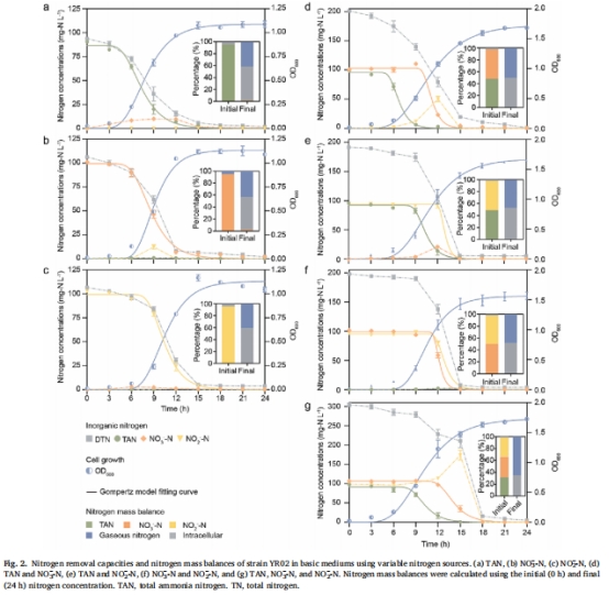 性能測試:在7種氮源組合下評估IN去除效率(圖2),氮平衡分析顯示氣態(tài)氮占比41.6–47.4%。