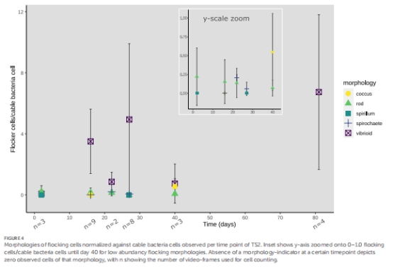 形態(tài)生態(tài)位分化:小型弧菌狀菌(低運(yùn)動(dòng)耗能)在集群中占優(yōu),暗示在缺氧區(qū)(電纜細(xì)菌周圍)的適應(yīng)性優(yōu)勢(圖4)。