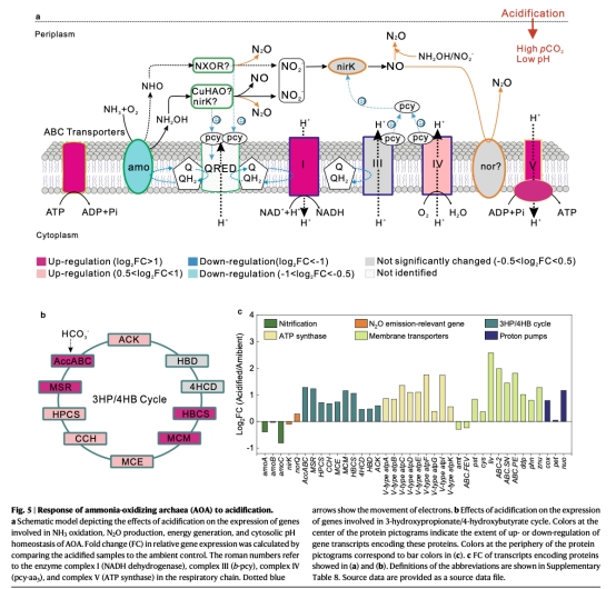 分子機(jī)制上,硝化菌通過上調(diào)V型ATP酶基因(維持胞內(nèi)pH穩(wěn)態(tài))和nor基因(增加N?O生成)響應(yīng)酸化脅迫。