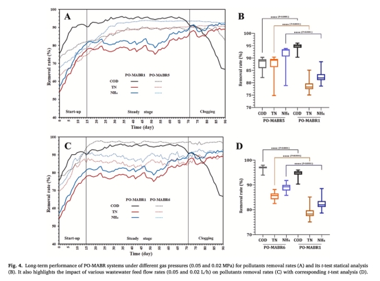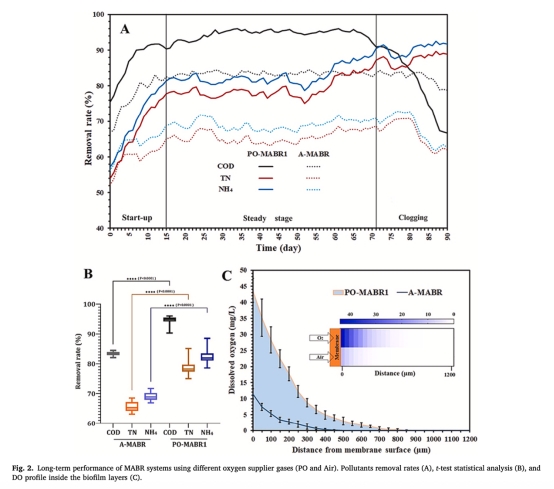 數據:PO-MABR平均COD去除率95%(A-MABR僅83%),TN去除率79%(A-MABR僅65%)