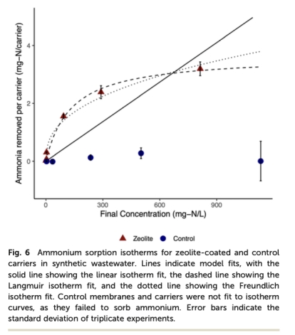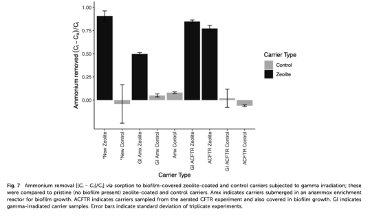 沸石通過吸附銨形成局部高濃度區域,促進Anammox菌定植,且吸附的銨可被微生物利用(圖8)。