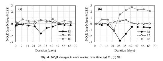 工藝優化指向:通過對比R2的N?OR與NO?R量級關系(圖7a),明確高排放時段與NO??積累的耦合性,為DO/pH精細化調控提供依據