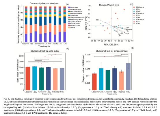 數據:增氧使1.7 g cm?3土壤菌群多樣性指數(Shannon)從5.2升至5.8,溶磷菌Proteobacteria相對豐度增加8.5%。