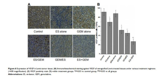最佳給藥方案:Endostar與吉西他濱同步給藥(ES+GEM)抑瘤效果最強,機制包括: