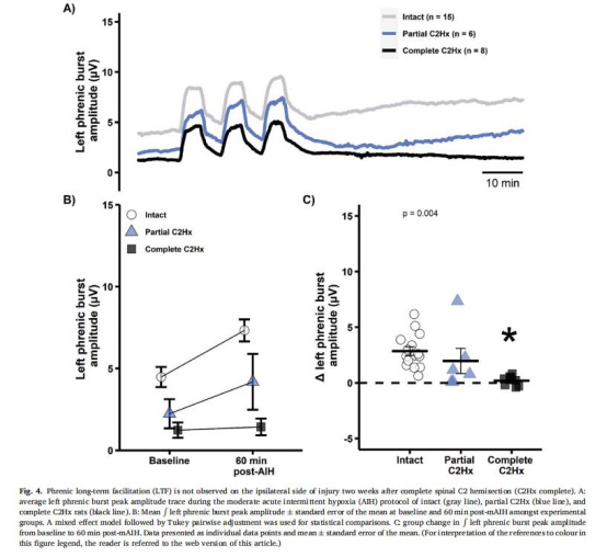 膈神經(jīng)可塑性受損:完全性C2Hx損傷同側pLTF消失,但對側pLTF保留。