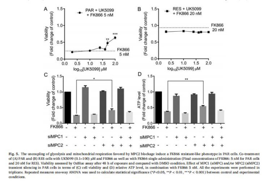 MPC2沉默(非MPC1)部分挽救FK866導致的細胞死亡和ATP耗竭。