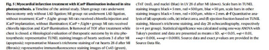 iCarP光照組(iCarP+/Light+)心肌細胞凋亡率最低(圖5d),心功能(LVEF)顯著改善(圖5f)。