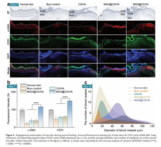意義:證明敷料通過促血管生成加速愈合,減少纖維化。