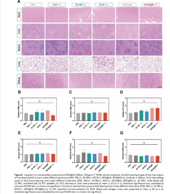通過血液生化及器官H&E染色驗證生物安全性(圖6)。