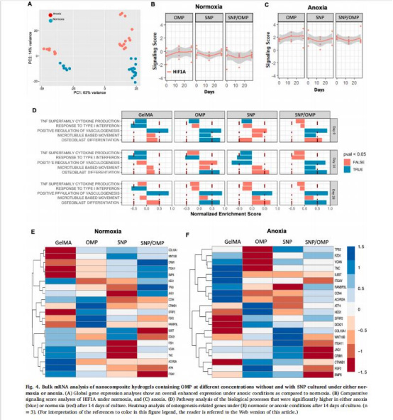 SNPs在缺氧下抑制細胞活性,而OMPs逆轉此效應并協同增強礦化。