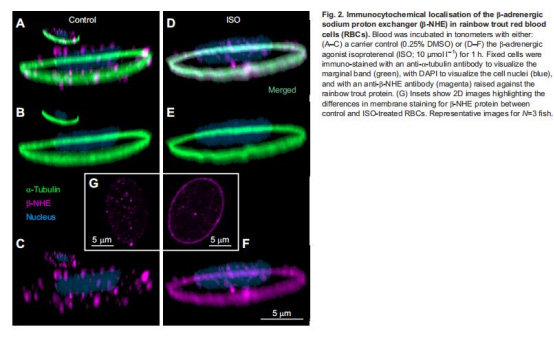 數(shù)據(jù):腎上腺素刺激后β-NHE蛋白從胞質轉位至紅細胞膜邊緣帶。