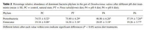 Effects of simulated gut pH environment on bacterial composition and pheromone production of Dendroctonus valens