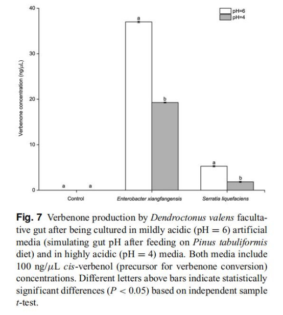 意義:極端pH(4或6)破壞菌群穩定性,減少verbenone生產菌。