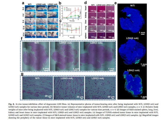 5.體內(nèi)腫瘤體積(圖8b):LDH(3 mA)組腫瘤體積較對照組減少90%。意義:驗(yàn)證植入物局部電療的抑瘤效果。