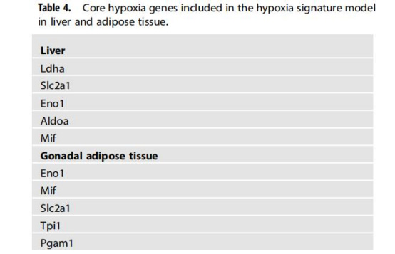 研究意義:pimonidazole染色面積↑與pO?↓相關(r=-0.27),驗證直接測量可靠性;基因表達(如脂肪組織Slc2a1↑、肝臟Ldha↑)揭示缺氧驅動糖酵解增強(Warburg效應);建立組織特異性缺氧基因特征(脂肪:Eno1、Mif等;肝臟:Ldha、Slc2a1等),為缺氧提供分子標志物。
