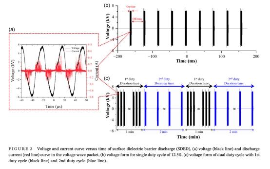該研究開發(fā)了一種通過雙占空比(交替高/低占空比)控制表面介質(zhì)阻擋放電(SDBD)溫度的策略,實(shí)現(xiàn)氮氧化物(NO?)和臭氧(O?)的選擇性生成。研究發(fā)現(xiàn):