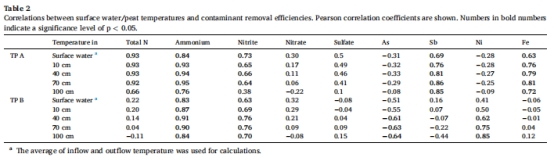 論文研究了芬蘭拉普蘭地區兩個處理礦山廢水的泥炭地(TPA和TPB)在寒冷氣候下的微生物活動與污染物去除效能。關鍵發現包括: