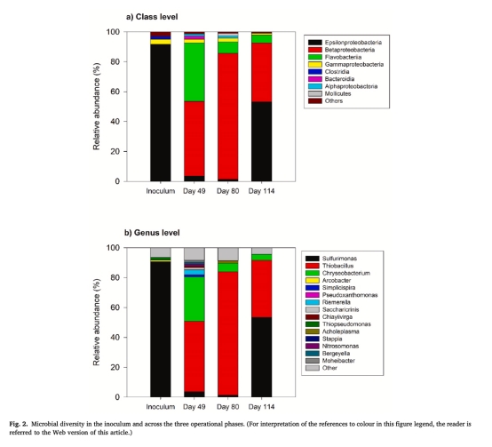 SRT 23h時Thiobacillus相對豐度達83%(初始<1%),嚴格硫限制促進高生物能量效率菌屬。