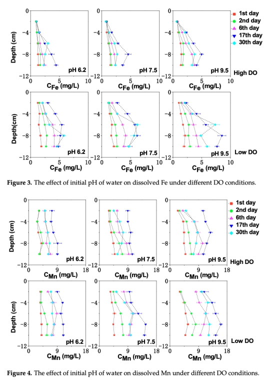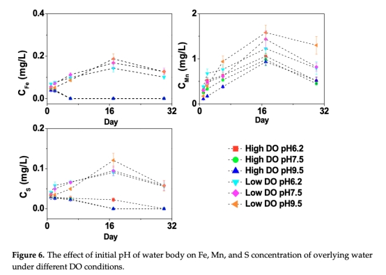 摘要指出:pH和溶解氧(DO)是控制沉積物-水界面砷(As)遷移的關鍵環境因子。本研究通過室內模擬實驗,分析不同DO(高氧/低氧)和初始pH(6.2、7.5、9.5)條件下太湖沉積物中鐵錳硫砷的動態變化。沉積物對水體pH的強緩沖作用使上覆水pH趨向中性;DO水平是砷釋放的關鍵因素,低DO環境下砷的釋放量和速率均高于高DO環境。在低DO和pH 9.5條件下,離子交換與厭氧還原的協同作用導致砷釋放最顯著。低DO條件下形成的無定形硫化亞鐵化合物是孔隙水砷濃度升高的重要機制。