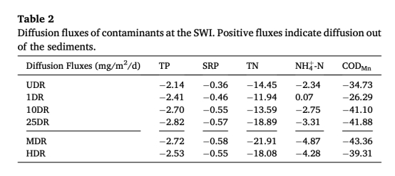 數(shù)據(jù)內(nèi)容:機(jī)械挖掘(MDR)與水力沖洗(HDR)后上覆水營養(yǎng)鹽濃度及擴(kuò)散通量。