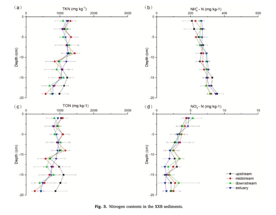 空間分布分析:沿香溪灣上、中、下游及河口采集沉積物巖芯,測定孔隙水和沉積物的氮形態(TKN、TON、NH??、NO??)分布(圖2、圖3)。